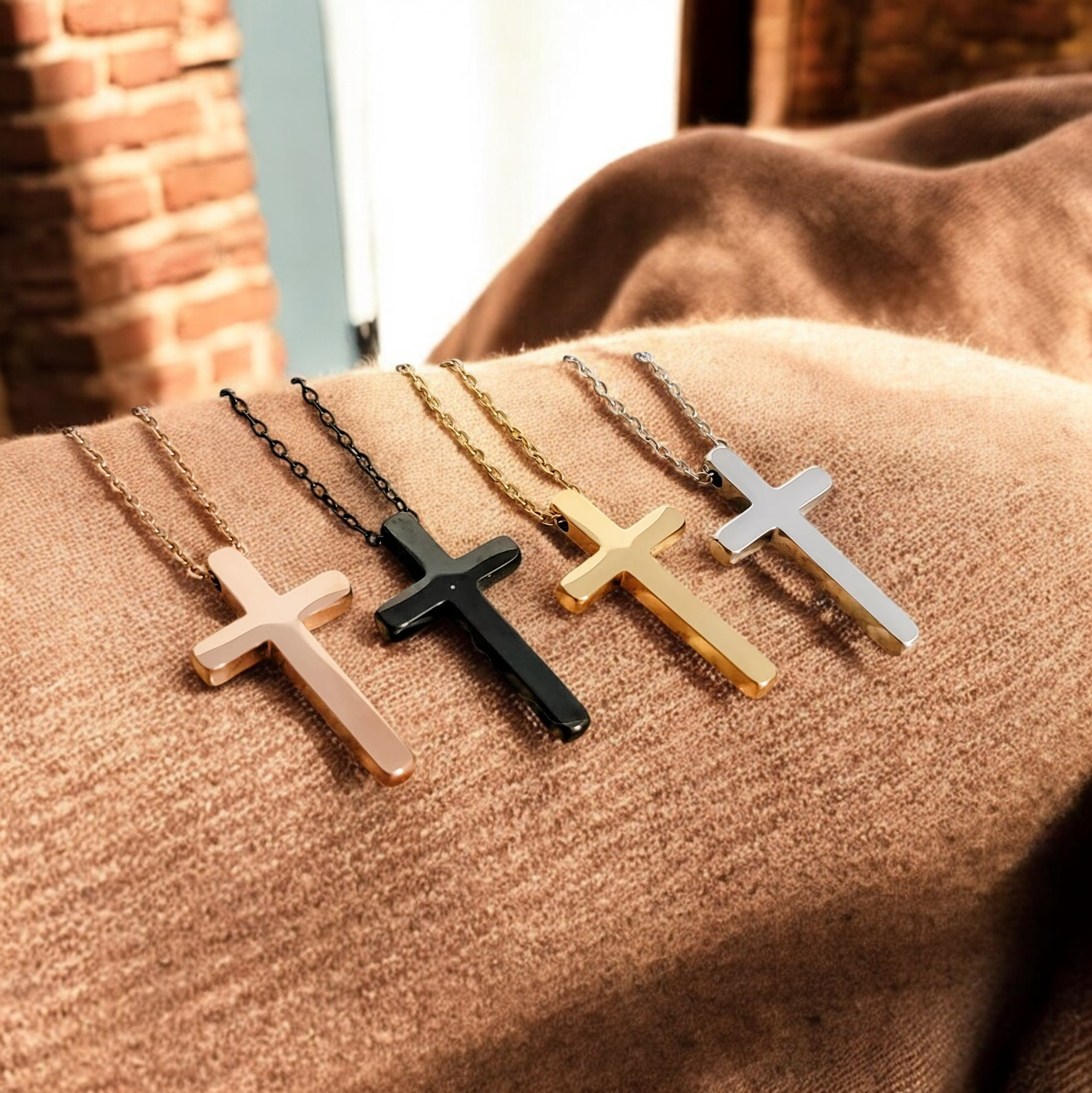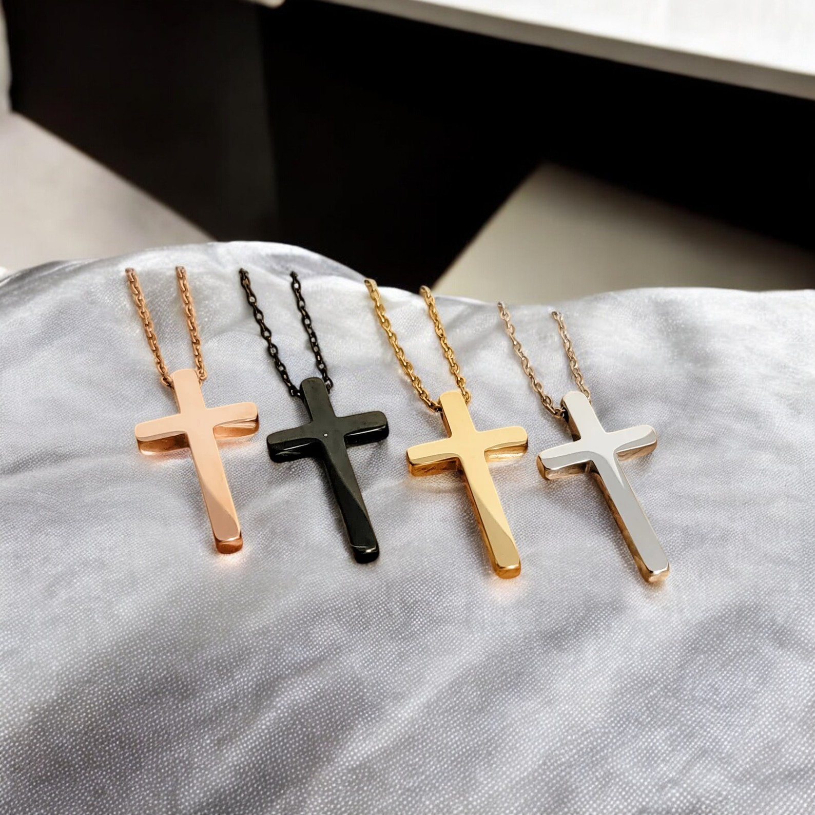 Necklace, Cross Vertical in Silver, Gold, Rose Gold, or Black