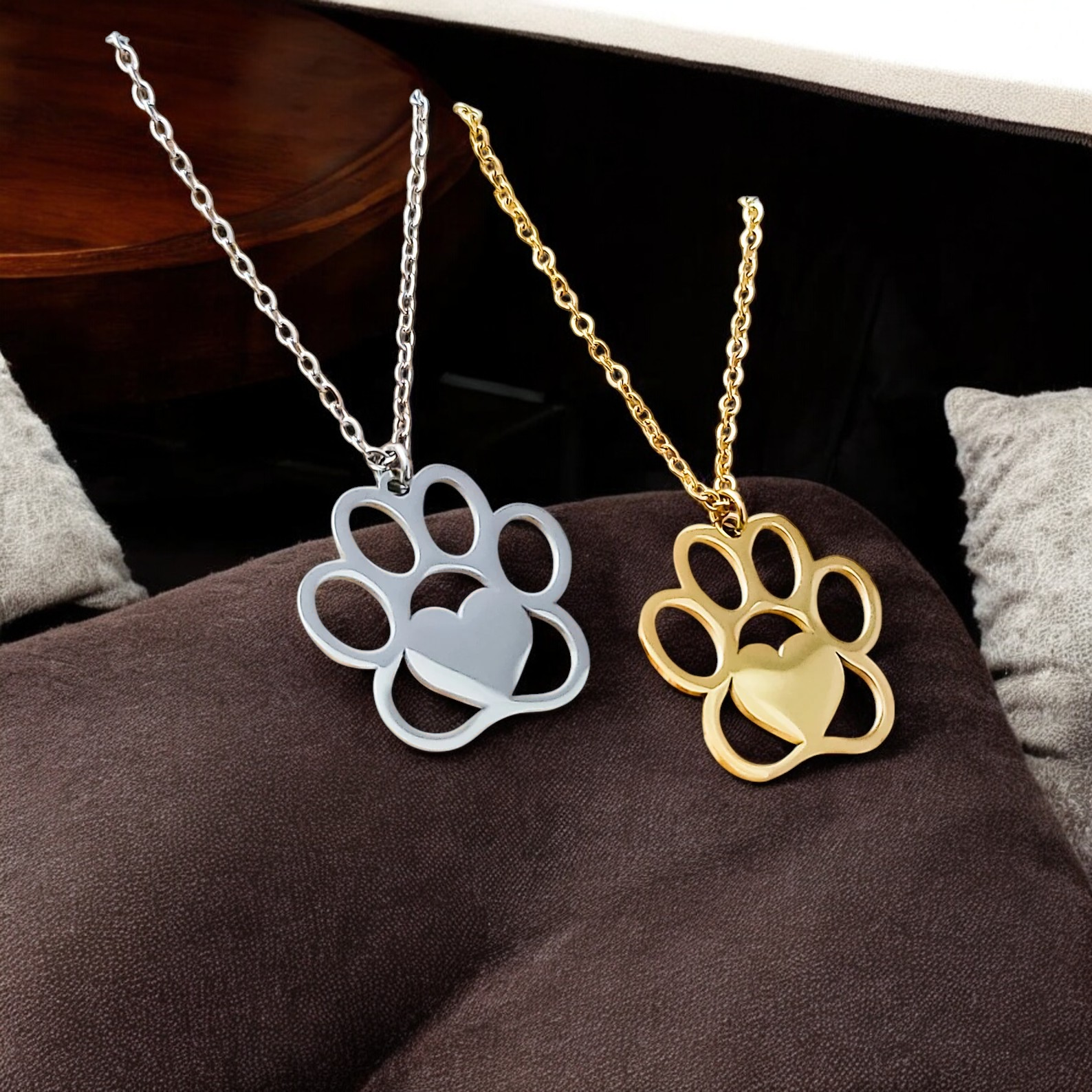Necklace Pendant, Paw Print Gold or Silver
