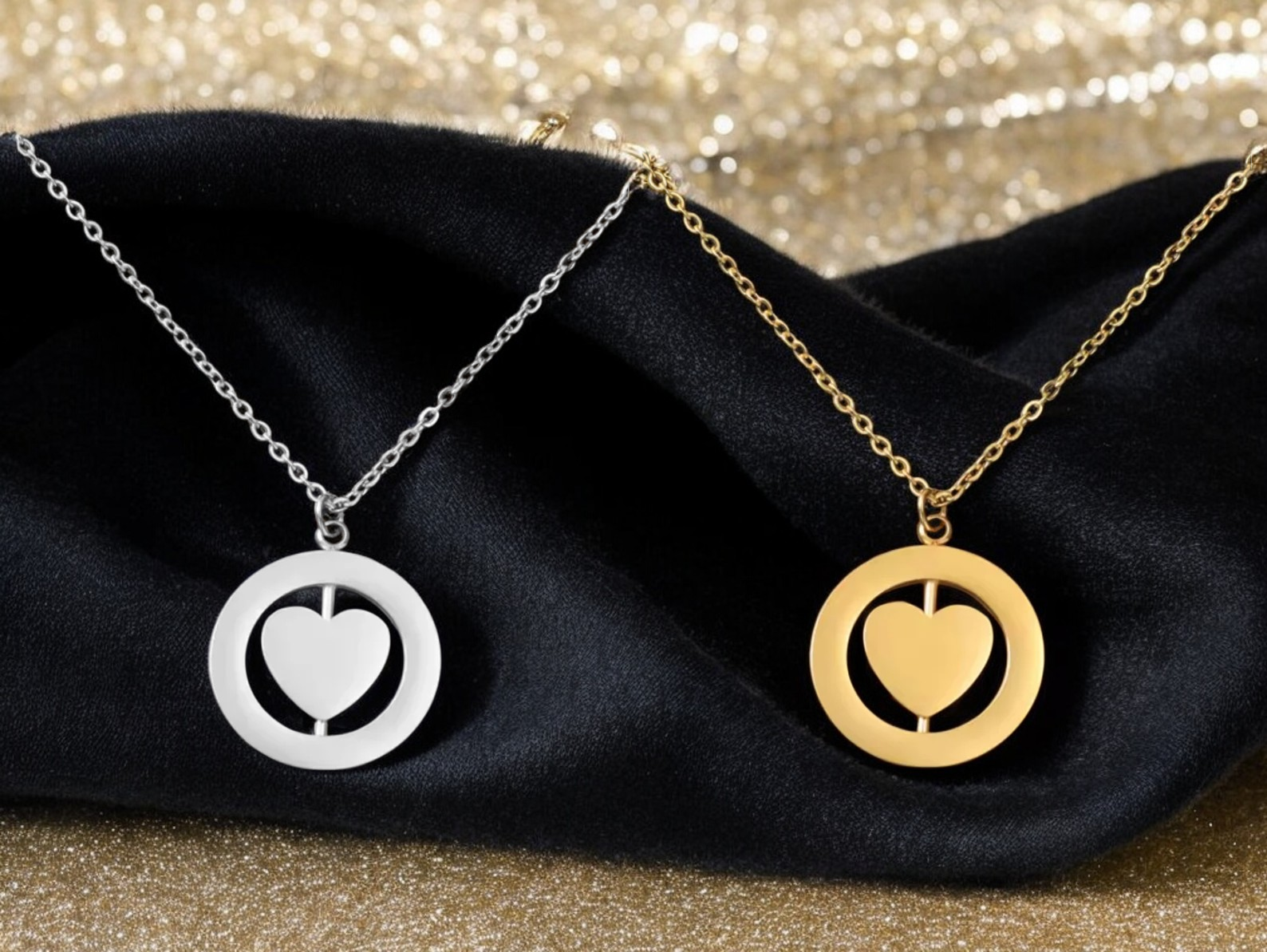 AA003 - Necklace Pendant, Rotating Heart Gold or Silver